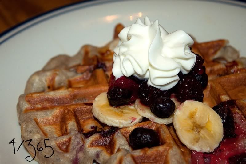 Today was great! We played alittle tennis and as a great reward I made Waffles for dessert. Here is my daughters creation. Mixed berries and Banana with whipped cream on top. Eventually she added some syrup. Yum-0